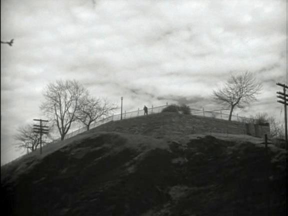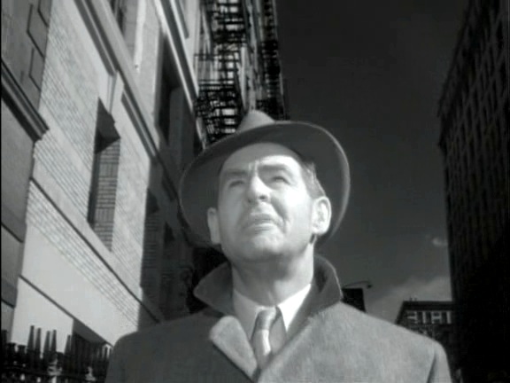 The scene where Burke propositions Bacco is nicely crafted by director Robert Wise. Bacco is in central park feeding pigeons on an open expanse of grass against the city skyline as Burke approaches. After some small-talk as Burke also feeds the pigeons, Burke makes a sudden movement towards Bacco which spooks the birds and gets Burke up-close to Bacco so that he can sotto-voce hatch his stratagem.